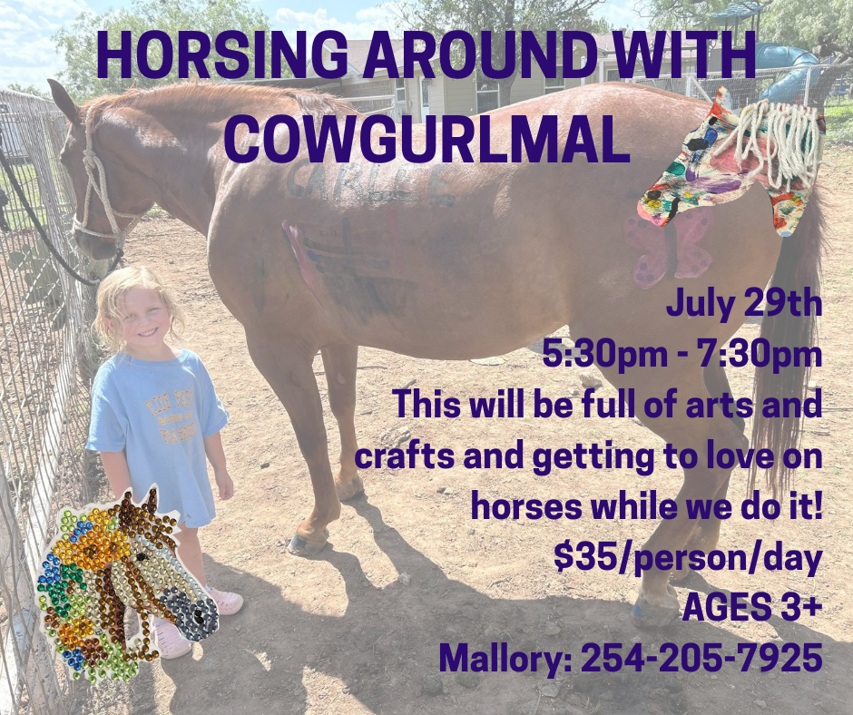 We love for people to get to spend time with our horses. Most everything we offer is for ages 3 and older, but there are some events we have that infant & toddlers are allowed to join in with their parent’s supervision.